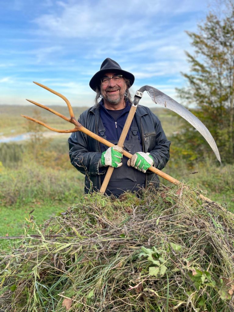 - Klimaneutralität: Keine industrielle Groß-Produktion von motorisierten Geräten wie Mäh – oder Aufsitz-Robotern sowie Traktoren, Balkenmähern oder Laubbläsern. Durch unseren Einsatz von erprobten, historischen Werkzeugen wie Laubrechen und Sensen, sparen wir Ressourcen.